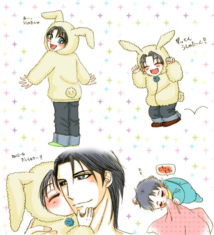 なおろー様のサイト「Otome Soul」(現在閉鎖)の「Violet + Soul」より。 当サイトの作品中から、なおろー様が萌えたシーンをイラストにして下さるという、文字書きの私には夢のようなコーナーです! うさみみ付きのもこもこパーカーを着たザッくん。とても可愛く描いて下さり嬉しい〜! 夜なべするアンジールが素敵です。 ↓ なおろー様、どうも有り難うございました!! 20140330